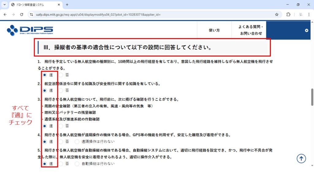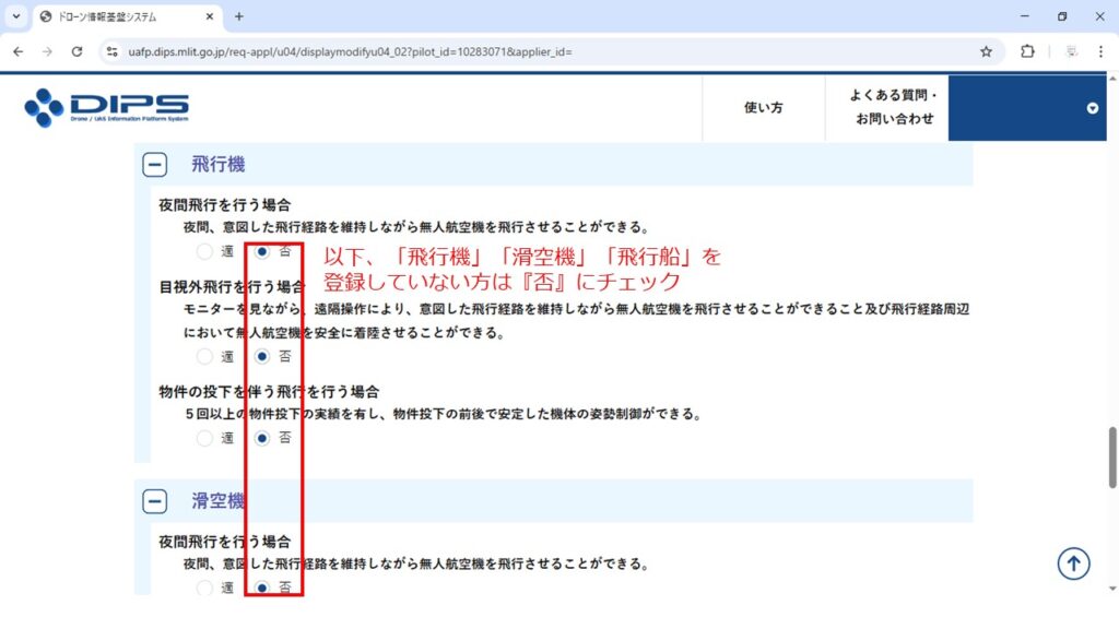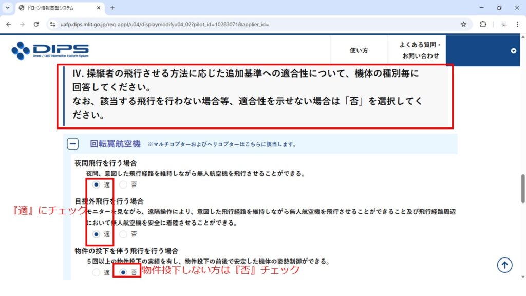 DIPS2.0で飛行許可・承認申請を行う全てのユーザー様へのお願い【操縦者の基本基準・追加基準の適合性入力について】