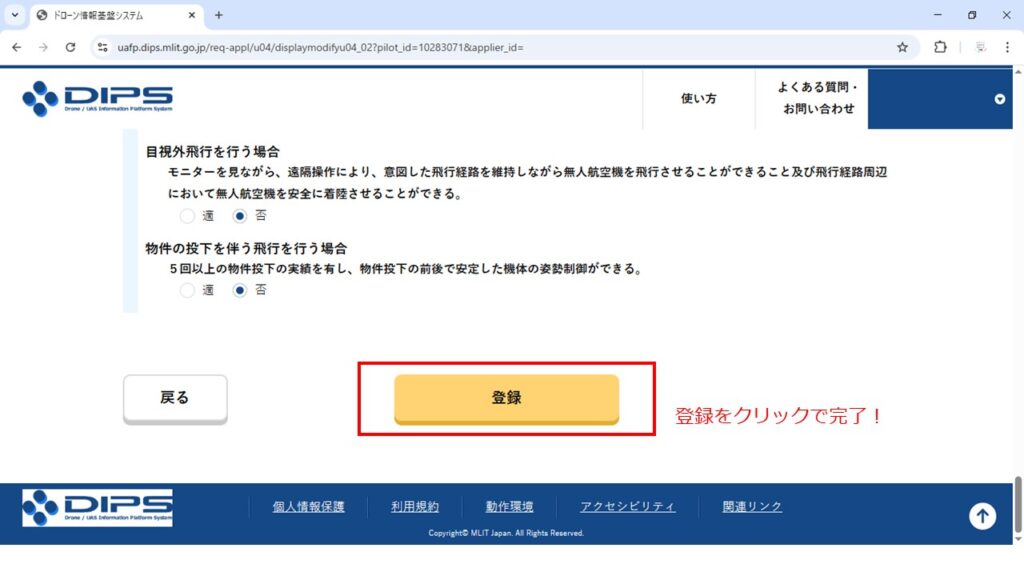 そのため、3月24日のDIPS2.0改修後、全てのユーザー様において、「操縦者情報の登録・変更画面」から