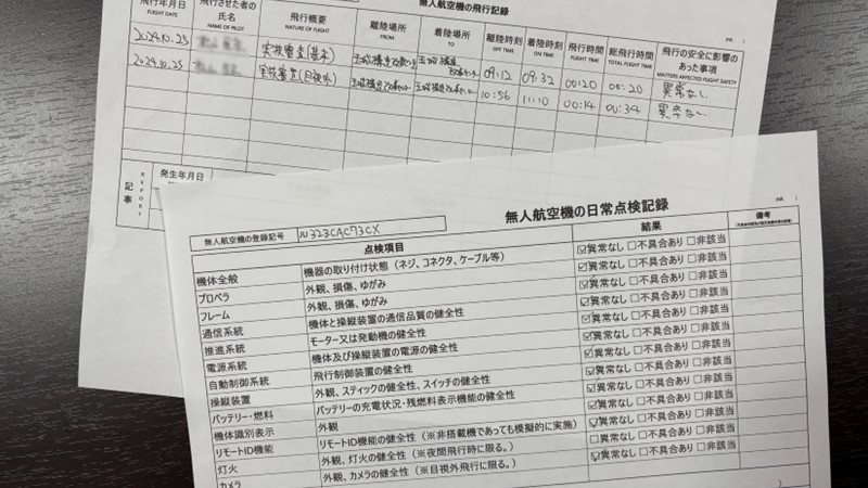 飛行日誌は義務ではありますが、日々機体の状態を把握しておくことは機体の安全はもちろんのこと